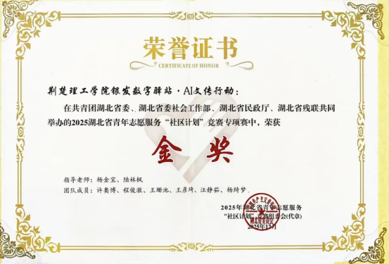 12月5日-7日,2025年湖北省青年志愿服务“社区计划”竞赛决赛圆满结束,威廉希尔官网银发数字驿站·AI文传行动项目荣获竞赛专项赛金奖。此次赛事由共青团湖北省委、湖北省委社会工作部、湖北省民政厅、湖北省残联联合主办。