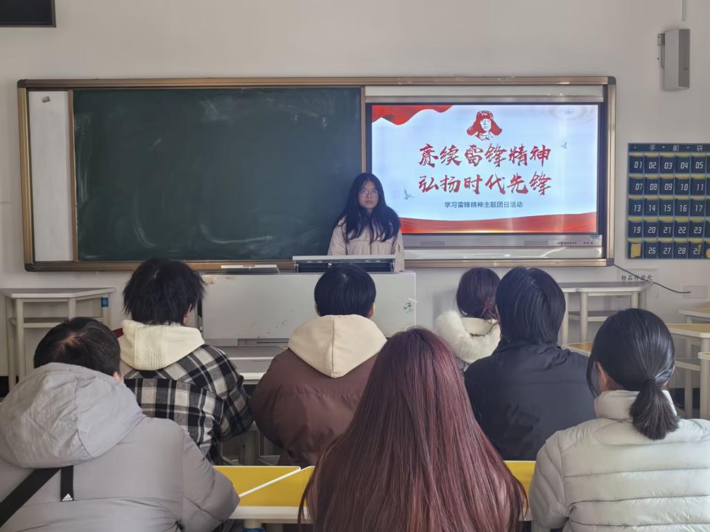 活动中,各班团支书带领团员青年重温雷锋同志的感人事迹。从“螺丝钉”的坚守到“为人民服务”的践行,从勤俭节约的点滴小事到无私奉献的高尚品格。一段段文字、一张张照片,将大家带回那个充满温暖与力量的年代,也让团员们深刻领悟到雷锋精神跨越时空的价值。