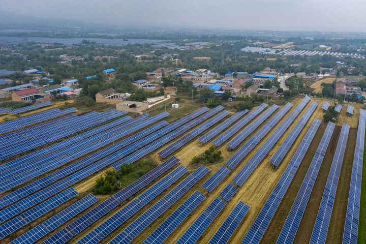 2025年6月25日在山西省运城市芮城县夭上村拍摄的光伏基地(无人机照片)。